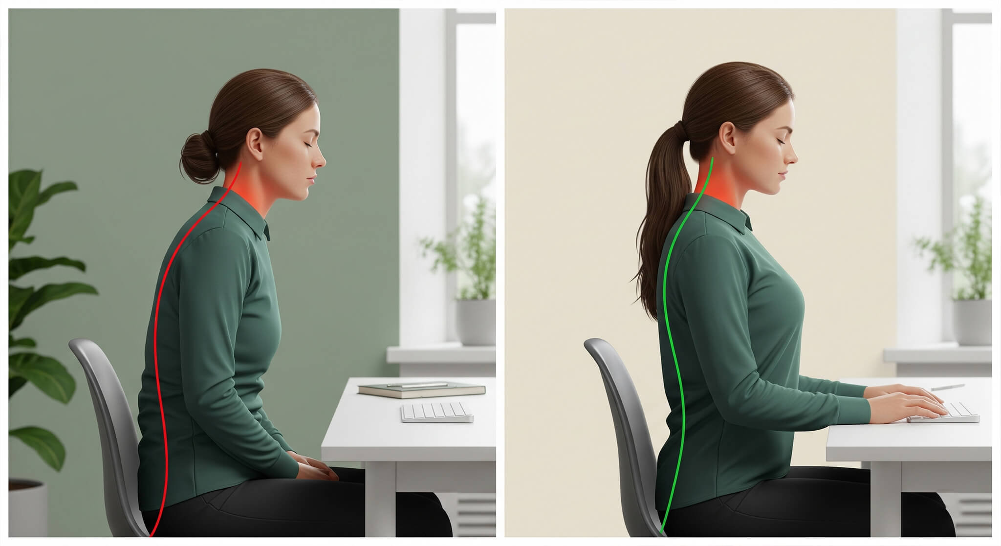 Average screen time often reaches 6–10 hours daily. This extended static positioning, coupled with a lack of physical activity, directly contributes to musculoskeletal disorders (MSDs) and chronic spinal pain. Habitual slouching and hunching cause shoulders to round and the head to protrude, disrupting muscle balance and imposing chronic stress on the cervical spine.